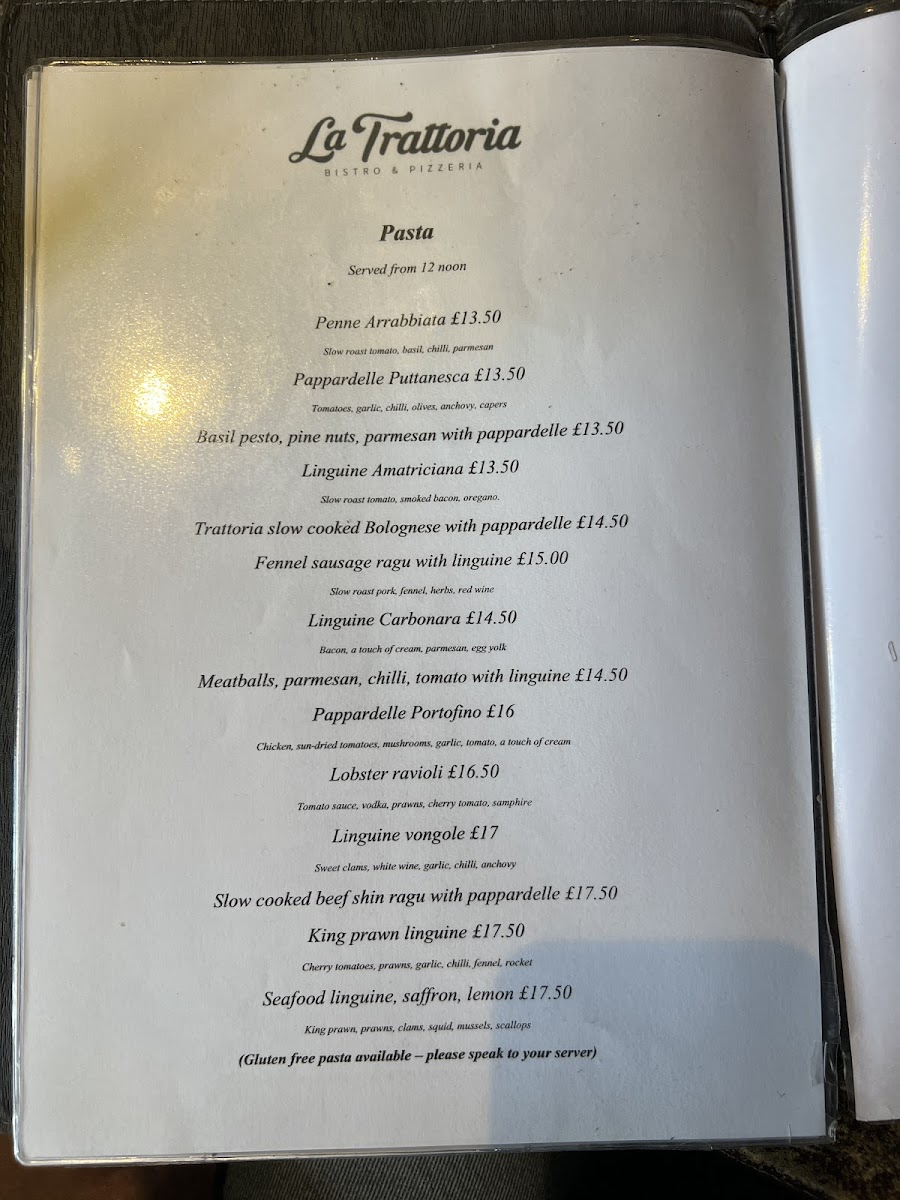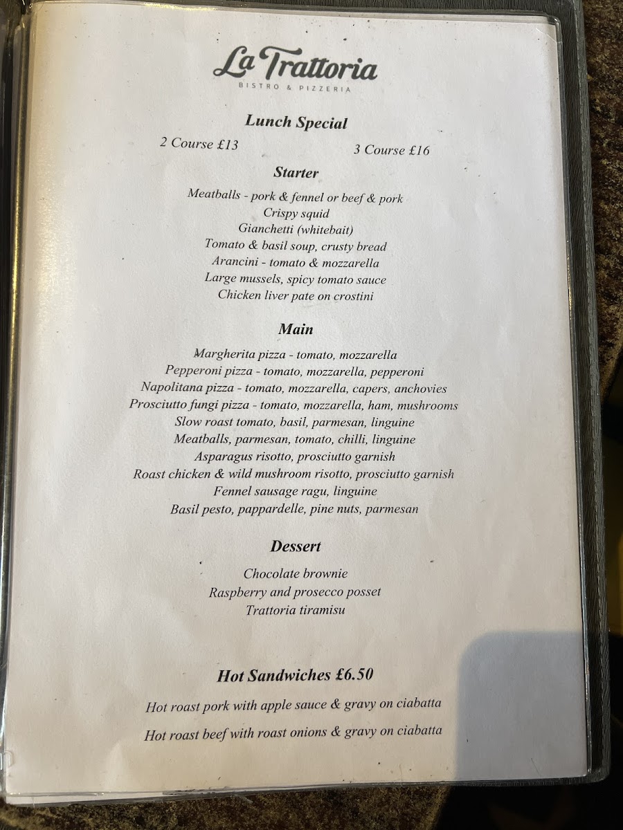 La Trattoria in Helmsley is a true celebration of Italian culinary craftsmanship paired with a welcoming wine bar atmosphere. Their menu showcases a vibrant array of traditional dishes, from hearty Pappardelle Puttanesca and slow-cooked Bolognese to delicate Lobster Ravioli, each prepared with fresh, locally sourced ingredients that elevate every bite. Sharing is encouraged through generous Antipasto platters and a tempting selection of Speciale pizzas, including the flavorful Napoli Salami & Roquito Pepper and the robust Finocchiona. Diners consistently praise the balanced flavors and authentic textures, complemented by a buzzing, warm atmosphere and attentive service. Whether enjoying a casual breakfast, a lively evening meal, or a relaxing glass of wine in the bar area, La Trattoria delivers an inviting, expertly crafted Italian experience that feels both comforting and refined. It’s a spot where passion for quality food and community connection clearly shines through.